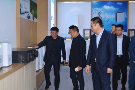 吳清平(右一)、侯恩龍(右二)參觀產(chǎn)品展廳